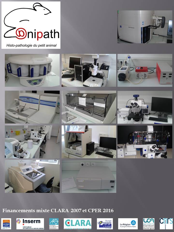 Le plateau technique d’histologie se situe dans le bâtiment CRBC, au 4e étage (faculté de médecine). Il permet de réaliser l’ensemble des analyses histologiques de routine sur tissus animaux et végétaux. La manipulation de tissus humains est strictement interdite. L’installation de ce plateau technique a bénéficié du soutien financier de l’Université Blaise Pascal, de l’Union Européenne (FEDER), du Conseil Régional d’Auvergne, de La Ligue Contre le Cancer comité départemental du Puy de Dôme et du Cancéropôle Lyon Auvergne Rhône Alpes (CLARA).