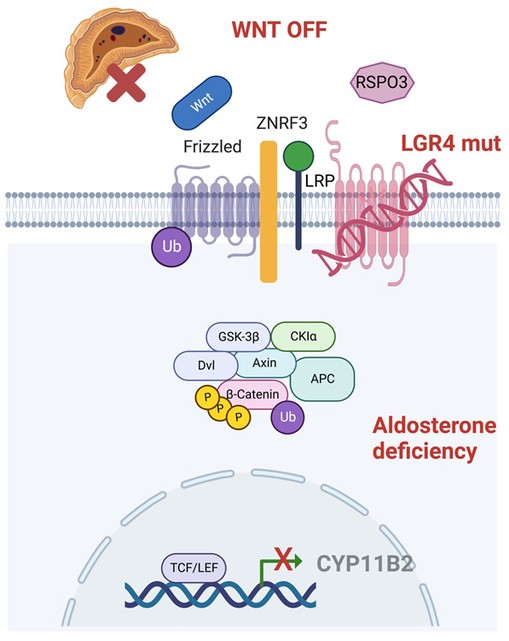 Ces travaux qui établissent pour la première fois le rôle de la voie WNT dans la différenciation de la zone glomérulée et l’étiologie de l’insuffisance surrénalienne, viennent d’être publiés par le J Clin Invest.